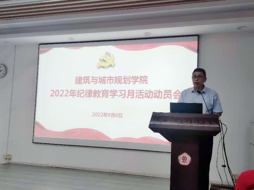 纪律教育学习月活动的总体安排、教育学习内容、工作要求等作了布置。他要求学院领导班子成员要发挥带头示范作用,率先开展纪律教育学习月活动;各党支部要将纪律教育学习与党员干部教育、师德师风教育、学生诚信教育等结合起来,采用多种学习形式,引导广大师生深刻认识“两个确立”的决定性意义、增强“四个意识”、坚定“四个自信”、做到“两个维护”,以新担当新作为推动学院加快改革发展,为学校高水平创新型大学建设作出新的贡献,以实际行动迎接党的二十大胜利召开。